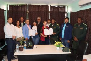 Acontecerbanilejo.com por: Glendy Marte, Baní .- El alcalde Santo Ramírez, junto a la presidente del Concejo Edilicio, Carolina Díaz y una comisión de regidores, entregó la mañana de este jueves al Instituto Nacional de Tránsito y Transporte Terrestre (INTRANT) y la Dirección General de Seguridad de Tránsito y Transporte Terrestre (Digesett) representados por Luisa Barrous y el teniente coronel Eudys Madé, respectivamente, la ordenanza municipal que regula el tránsito de vehículos pesados en el municipio de Baní.