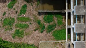 Sin embargo, se mantienen represadas toneladas de botellitas, platos plásticos, troncos y otros residuos en el área donde se succiona el agua.