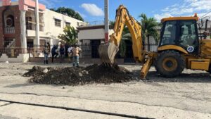 Acontecerbanilejo.com por: Glendy Marte, Baní.- Personal técnico y maquinaria del Instituto Nacional de Aguas Potables y Alcantarillados (INAPA) trabajan este lunes en la calle Restauración, donde en días pasados se había registrado un colapso en el sistema cloacal que afectaba a residentes y comercios de la zona.