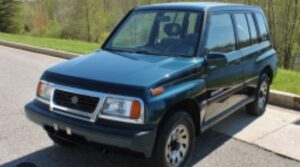 Se trata de un jeep marca Suzuki, modelo Sidekick JLX, de cinco puertas, año 1998, con color negro.